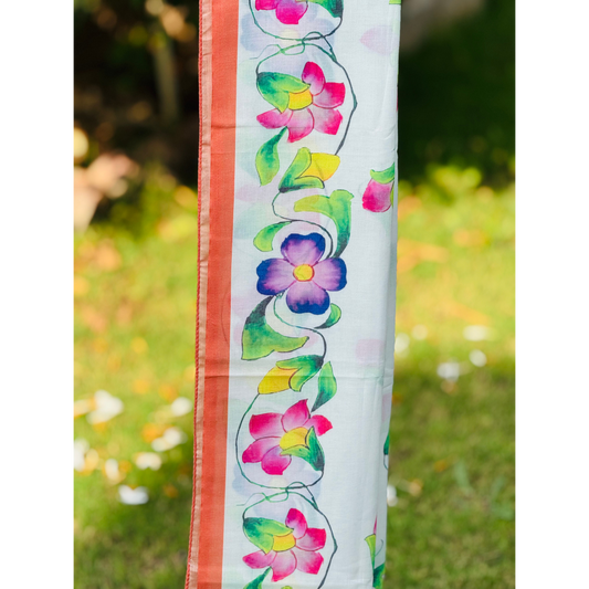 Hand-Painted Cotton Gamcha/Dupatta with Floral Design