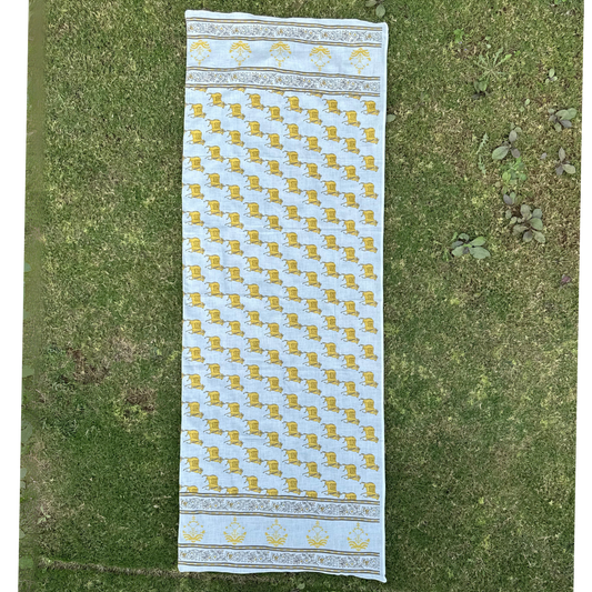 Traditional Cow Motif Cotton Aasan – Pink & Yellow Patchwork