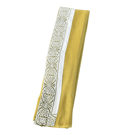 Elegant Mustard Cotton Uparna with White Intricate Border