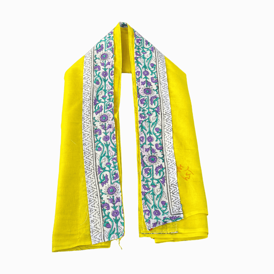 Vibrant Yellow Cotton Uparna with Floral Purple-Green Border