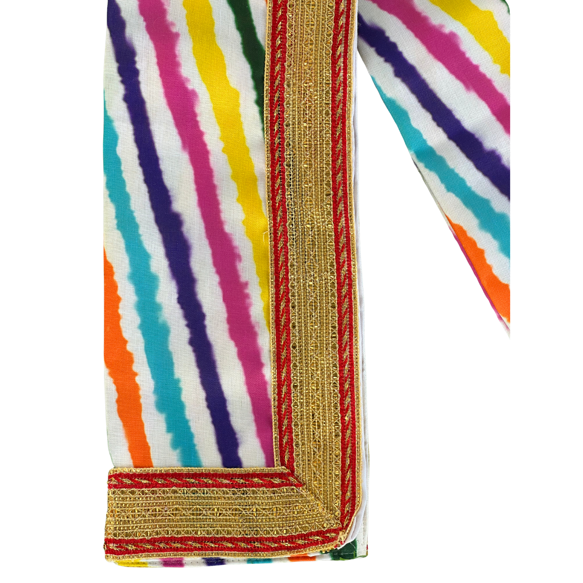 Vibrant Rainbow Striped Dupatta with Festive Gold Border